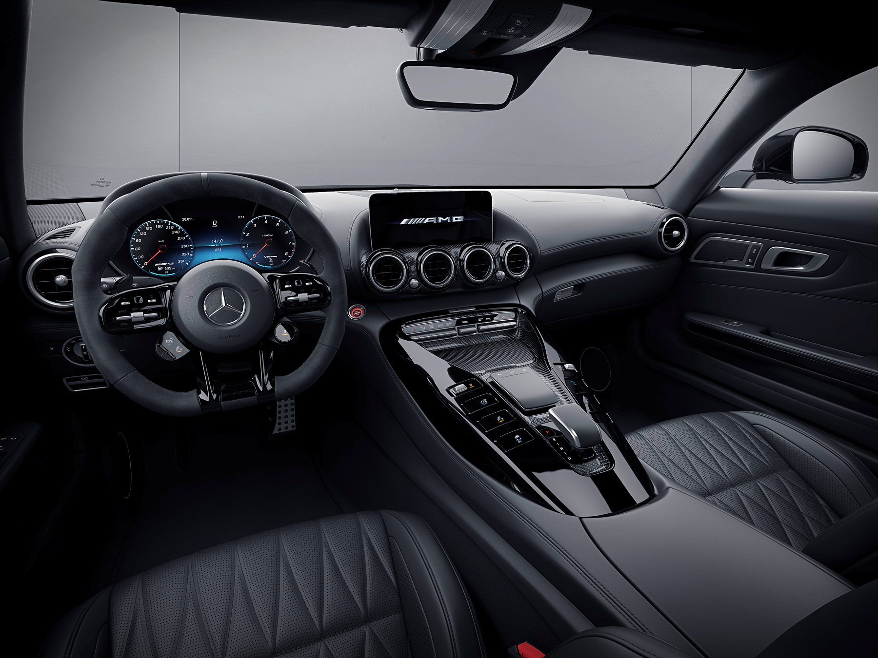 실내는 혁신적인 첨단 기능과 함께 한 단계 진화했다. V8 스타일의 센터 콘솔에는 디스플레이 스위치와 스마트폰처럼 조작이 가능한 터치패드가 탑재됐다. 스티어링 휠에는 포뮬러원 스티어링을 연상시키는 AMG 스티어링 휠 버튼이 장착돼 스포티한 룩을 구현함과 동시에 특정 주행 기능을 정확하고, 직관적으로 조작할 수 있다.
